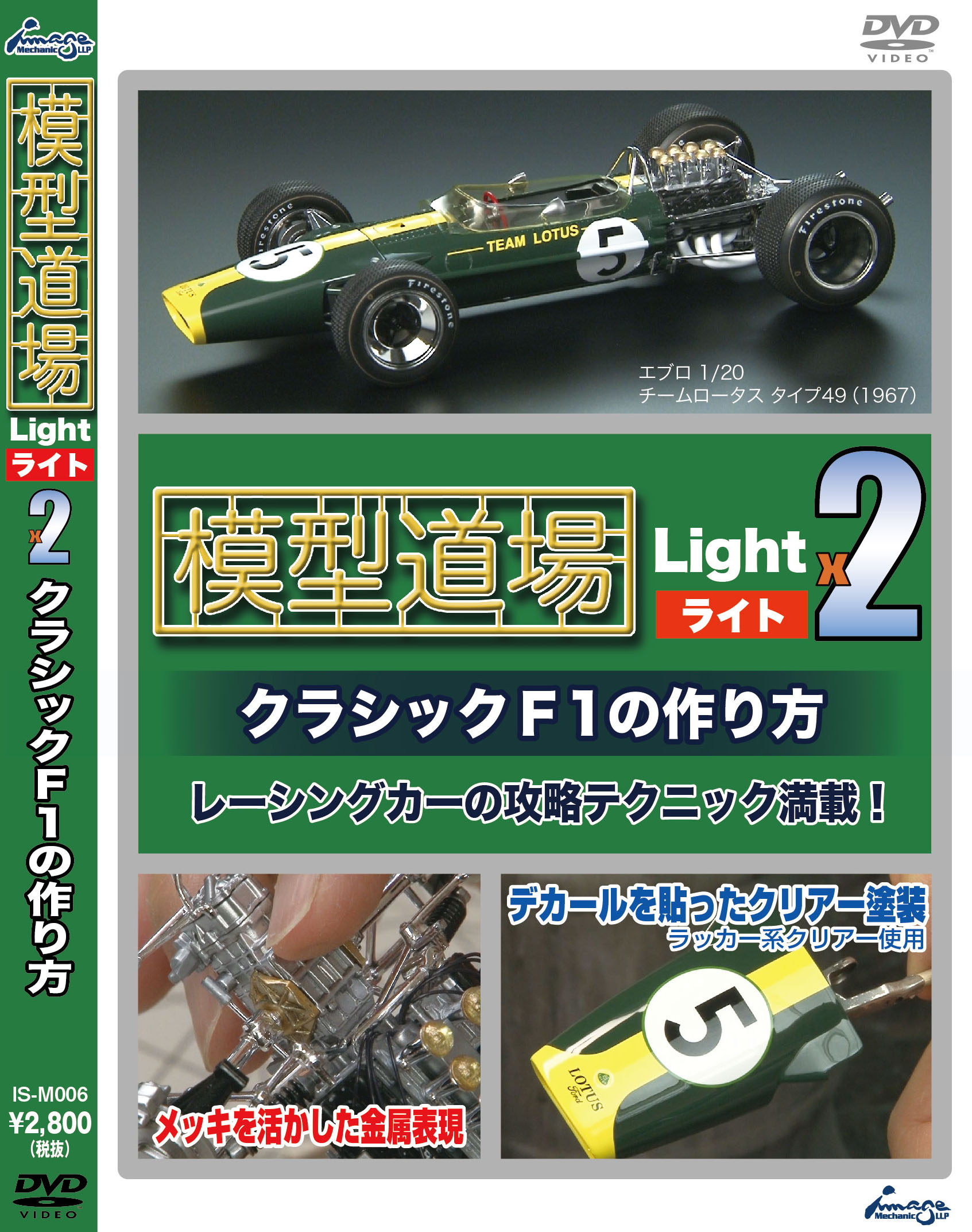 エブロ 1/20 チームロータス タイプ49(1967)を作例に、金属表現、デカールを貼ったクリアー塗装などレーシングカー必須のテクニックを紹介します。