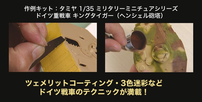 プロの技を超接写収録。「ガッツリわかる」模型作りDVDの決定版! タミヤ1/35キングタイガーを作例にパーツの切り出しからドイツ戦車に欠かせないツェメリットコーティングや三色迷彩塗装まで収録。